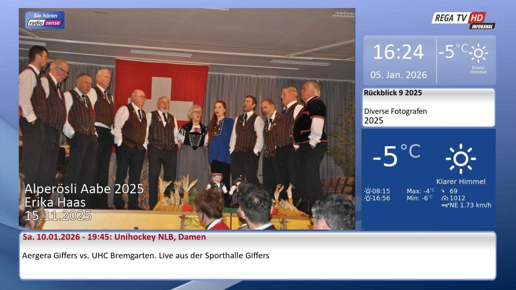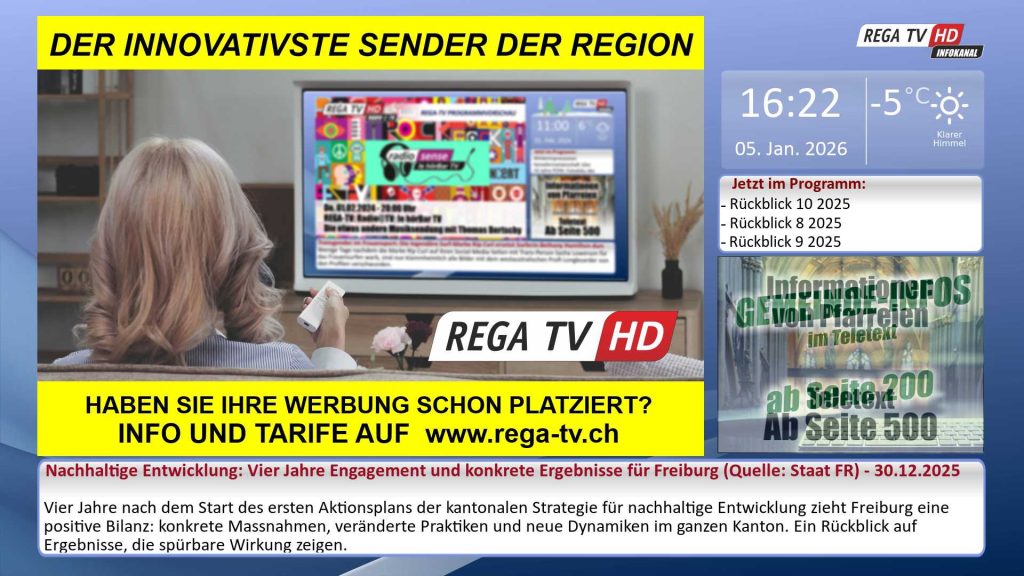 Während andere TV-Sender ihre Sendezeit mit endlosen Shopping-Formaten füllen, bietet REGA-TV seinen Zuschauerinnen und Zuschauern ein umfassendes Informationsangebot aus der Region. Der REGA-TV Infokanal ist in dieser Form einzigartig: eine sorgfältig kuratierte Mischung aus über 100 aktuellen Fotos pro Woche, tagesaktuellen Nachrichten, Wetterinformationen, einer Wochenvorschau, Webcams aus der Schweiz sowie dezent und wirkungsvoll platzierter Werbung.